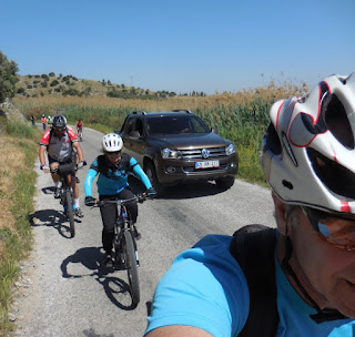 Bir grup dinlenirken diğer grupla önden Karina'ya pedallıyoruz.